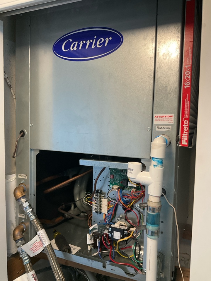 AC Repair Call unit leaking water. Evaluate system to find drain line was clogged. Clear drain line and unit is now cooling properly and is no longer leaking water.