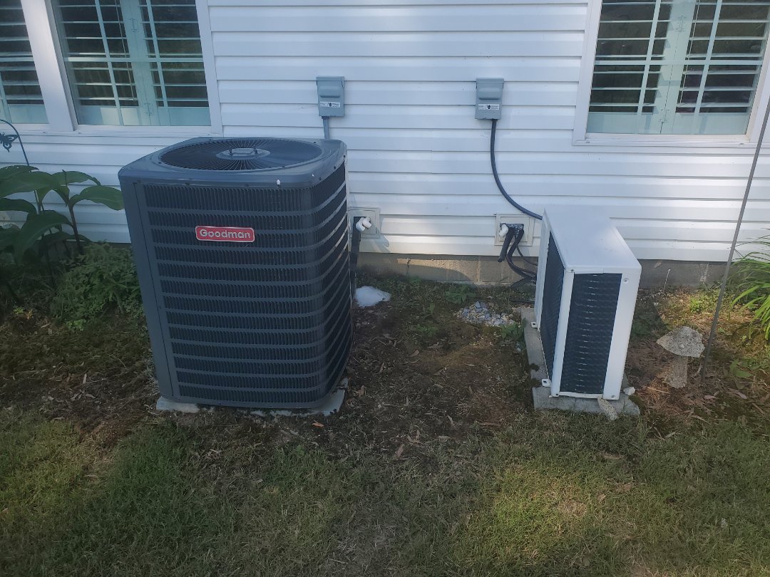 Service call. Performed maintenance on Goodman heat pump and Carrier minisplit.