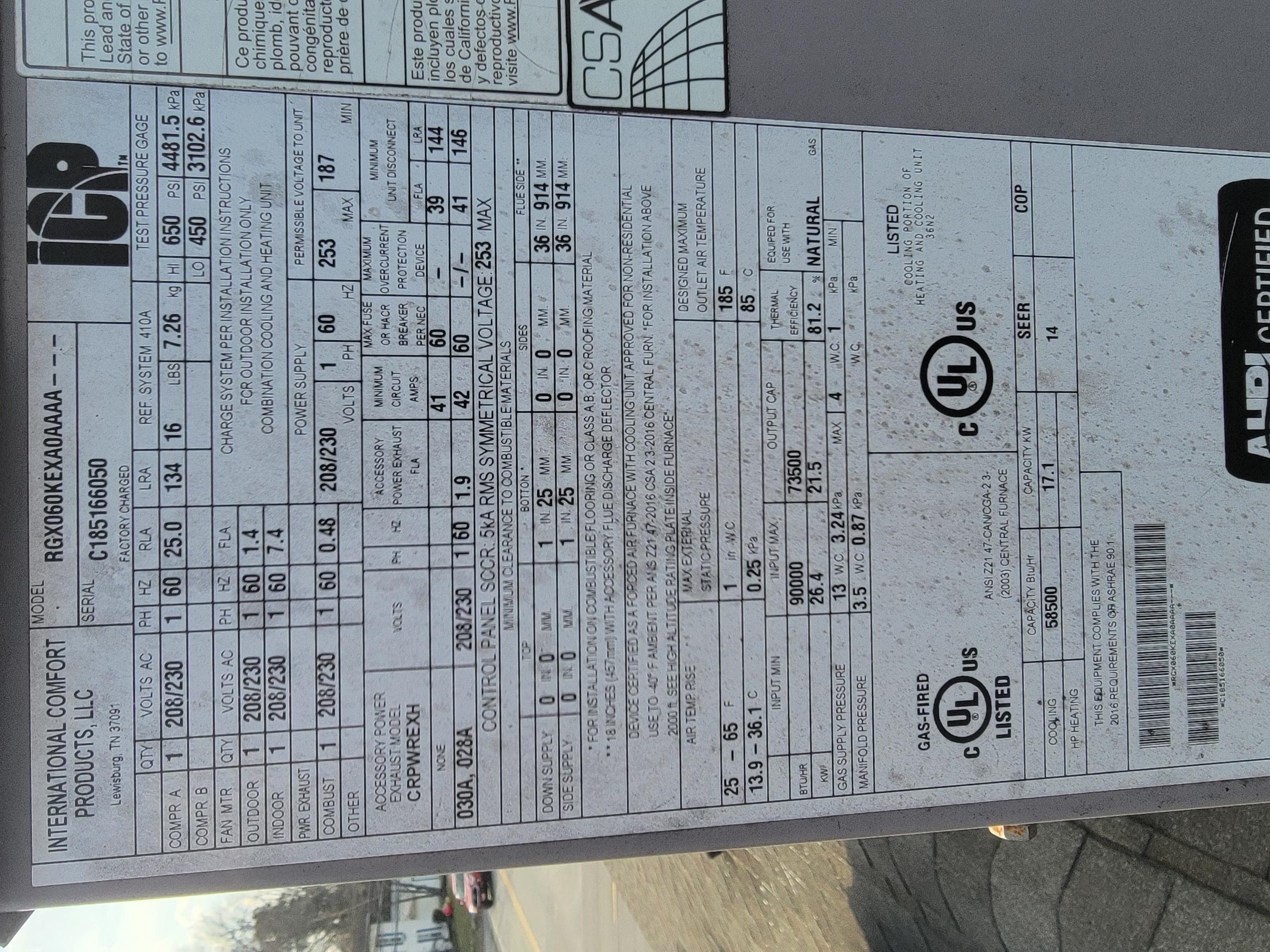 Performed heating maintenance on a Carrier single stage 80% efficient natural gas furnace Filter is new *Recommend using 24x25x4 filters** Height of the 24x24x4 filter currently in place is a little short Blower is in OK condition Blower motor capacitor tested 9.6mfd (rated 10mfd) Pulled and cleaned flame sensor Ran combustion analyzer while performing run test of the furnace Combustion results are good, heat exchanger gets a passing grade Gas pressure set to 3.2"wc Temperature rise was 65⁰ (spec is 40-70) Blew out pressure switch port on the inducer housing No concerns found on today's visit Furnace is operating within factory specifications at this time