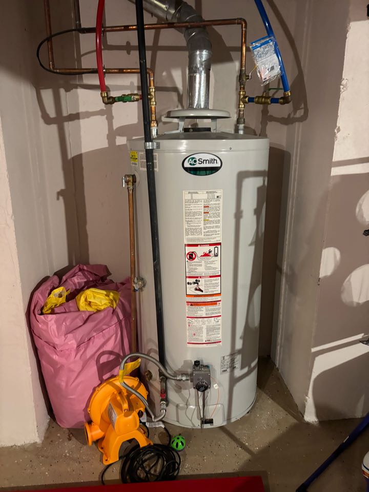 Arrived to the home, customer states that their existing 50 gallon water heater is leaking. The existing water heater is from 2009 and is leaking from the bottom. Client is already a member and I provided an option for replacement and client would like to go through with the replacement. Supplied and installed 50 gallon low Btu water heater Drained and removed existing water from the home Supplied and installed new copper pipe, fittings and flu pipe Supplied and installed new ball valve and bonding wire Secured all connections Filled and purged system Checked for leaks and fired system up There are no leaks at this time *permit fees are at home owners cost